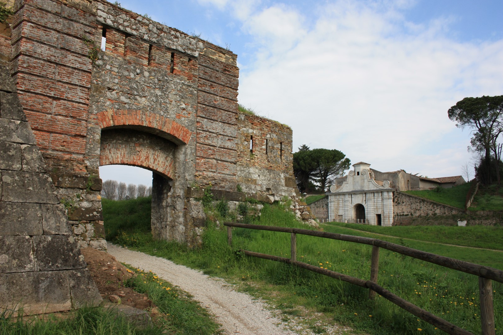 Controporte. Originariamente si accedeva alla fortezza attraverso un percorso che aggirava i rivellini situati a difesa delle porte. Il terrapieno difensivo, oggi tagliato dalla strada di accesso alla città, era controllato ai lati da due controporte che erano un tutt'uno con la cinta muraria.
